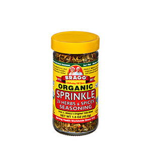 Information: Bragg Certified Organic Sprinkle Seasoning is a 50 year favorite formulation by Paul C. Bragg. A blend of All Natural Herbs and Spices which adds flavor to most recipes, meals and snacks. Gluten Free.