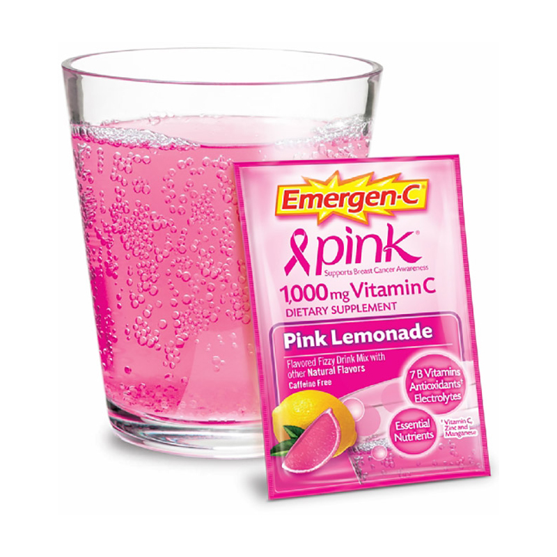 Pink is about power, strength, and energy in so many ways. Delicious Emergen-C Pink® Lemonade flavor vitamin supplement fizzy drink mix is loaded with essential nutrients including 1,000 mg of vitamin C and other immune supporting antioxidants zinc and manganese, 7 B vitamins to enhance energy naturally, and electrolytes to replenish post-workout!* The power of Pink supports healthy choices for today and hope for tomorrow.