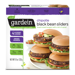 gardein™: water, cooked black beans, expeller pressed canola oil*, cooked brown rice, roasted yellow corn*, onion, tomato paste, soy protein concentrate*, roasted red and green bell peppers, organic cane sugar, potato starch, modified vegetable gum, sea salt, yeast extract, onion powder, spices, garlic powder, paprika, black bean powder, natural flavors (from plant sources), tomato powder, citric acid, lactic acid, instant coffee, molasses.