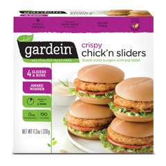 gardein™: water, soy protein concentrate*, expeller pressed canola oil*, vital wheat protein*, soy protein isolate*, enriched wheat flour* (wheat flour, niacin, ferrous sulfate, thiamine mononitrate, riboflavin, folic acid), methylcellulose, spices, yeast extract, onion powder, sea salt, organic cane sugar, malted barley extract, dehydrated onion, dehydrated garlic, natural flavors (from plant sources), garlic powder, white distilled vinegar, pea protein, carrot fiber, beetroot fiber, molasses, paprika and turmeric extracts, annatto extract. *Non genetically engineered soybeans, wheat and canola.