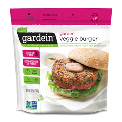 gardein™: water, cooked brown rice, roasted vegetables (onions, corn, red and green bell peppers), vegetables (carrot, peas), gluten-free rolled oats, expeller pressed canola oil, soy protein concentrate, yeast extract, methylcellulose, organic cane sugar, dehydrated garlic, garlic powder, onion powder, sea salt, spices, natural flavors (from plant sources), paprika, citric acid. Manufactured in a facility that also processes wheat products.