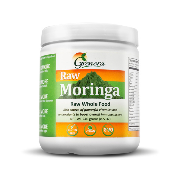 Moringa Powder by Grenera Nutrients is a superfood dietary supplement that contains 90 nutrients and 46 antioxidants.