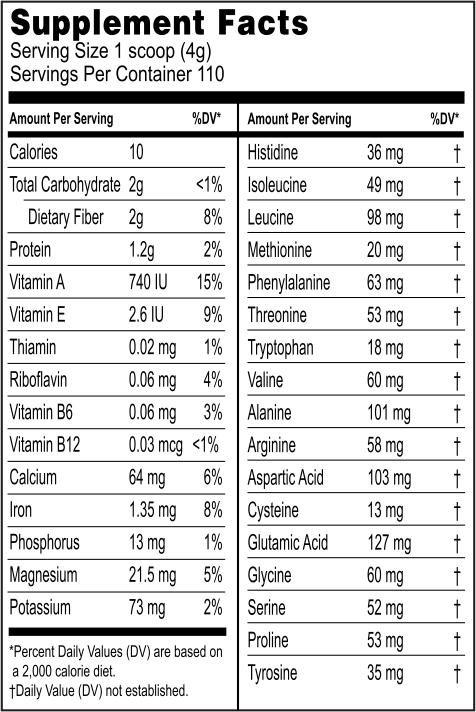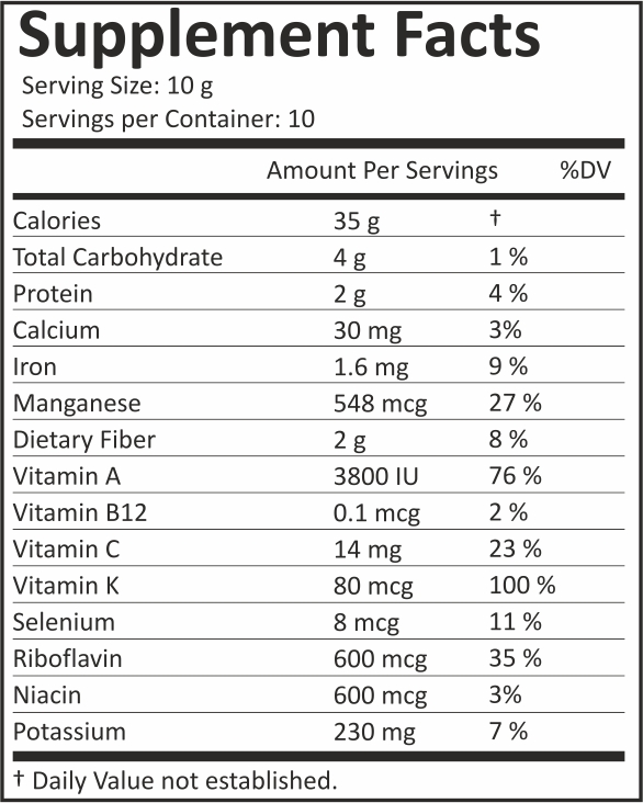 Spirulina Powder Contains a rich natural source of B12, a wide range of functional vitamins and minerals and a whole spectrum of phtyopigments including beta carotene, chlorophyll and phycocyanin.
