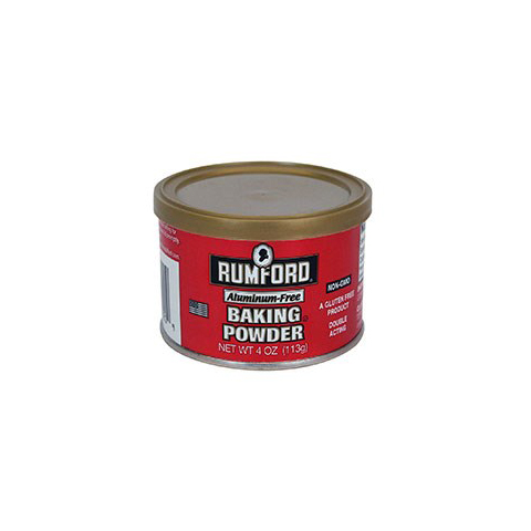 4 oz Rumford Baking Powder cans. Rumford Non-GMO, Gluten-Free, Aluminum Free, Double Acting Baking Powder is a great leavening agent used in all types of delicious baked good recipes.