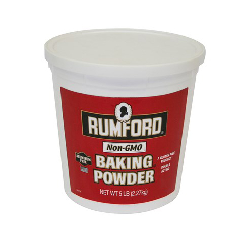 5 lb Rumford Baking Powder cans. Rumford Non-GMO, Gluten-Free, Aluminum Free, Double Acting Baking Powder is a great leavening agent used in all types of delicious baked good recipes.