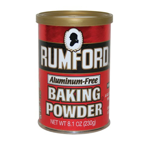 8.1 oz Rumford Baking Powder cans. Rumford Non-GMO, Gluten-Free, Aluminum Free, Double Acting Baking Powder is a great leavening agent used in all types of delicious baked good recipes.