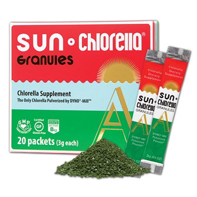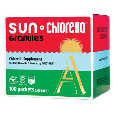 Sun Chlorella granules pack all of chlorella's healthy nutrition into an easy-to-carry, easy-to-add powder form. This chlorella powder can quickly be added to your favorite drink or sprinkled over any dish for an extra punch of healthy benefits.